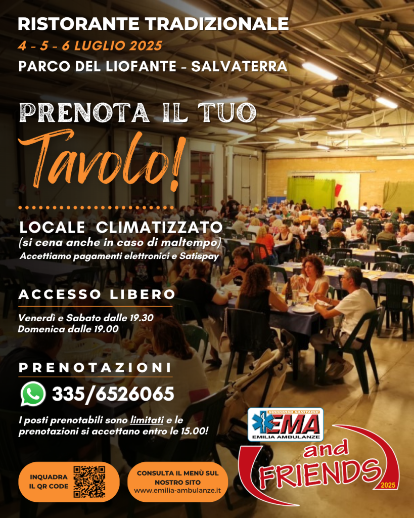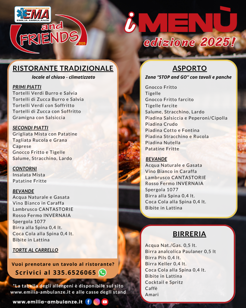N.B.: il menù del Ristorante Tradizionale è consumabile solamente all’interno del locale al chiuso (climatizzato). All’esterno è possibile consumare l’Asporto (gnocco fritto, tigelle, piadine).