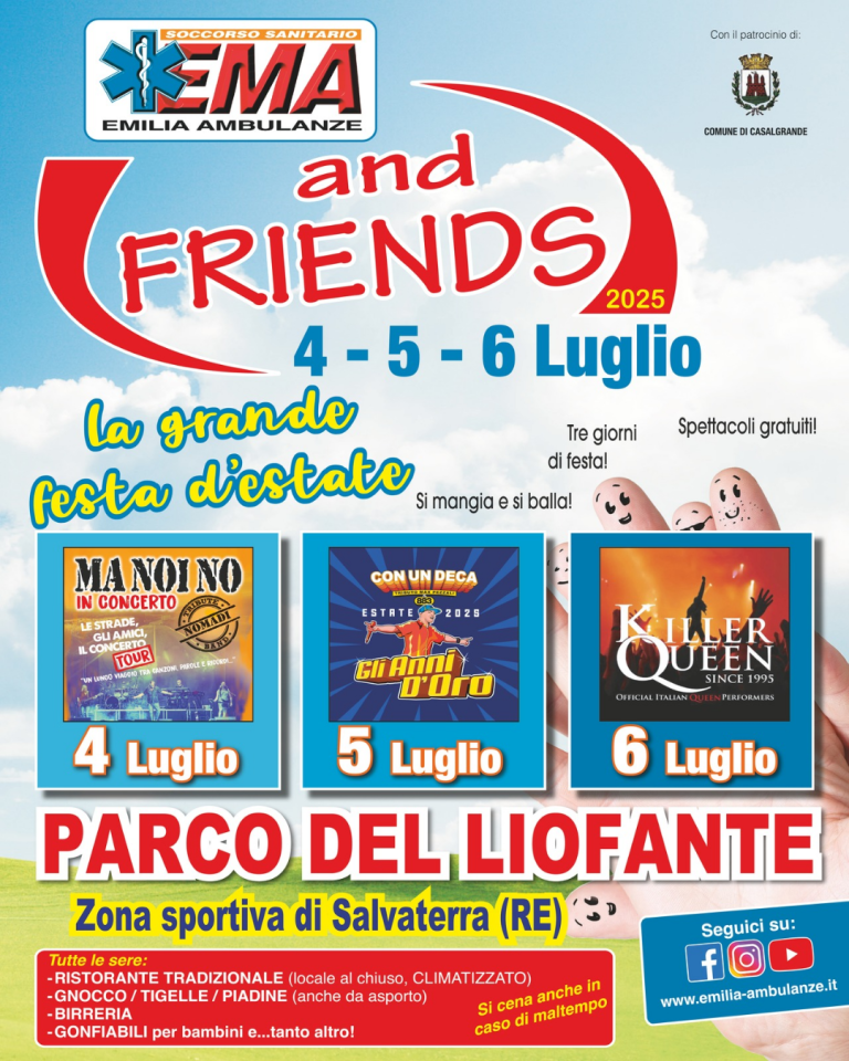 Ecco il programma della Grande Festa d’Estate “𝙀𝙈𝘼 𝙖𝙣𝙙 𝙁𝙧𝙞𝙚𝙣𝙙𝙨” del 𝟰 – 𝟱 – 𝟲 𝗟𝘂𝗴𝗹𝗶𝗼 al 𝗣𝗮𝗿𝗰𝗼 𝗱𝗲𝗹...